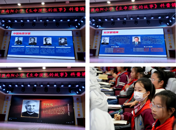 讲座结束后,学生们观看了关于李四光科学家精神的视频。李四光先生为中国地质事业做出的卓越贡献,以及他爱国奉献、勇于探索、严谨治学的精神,深深打动了在场的每一位学生。 视频中李四光先生为了寻找中国的石油资源,不畏艰难险阻,深入野外进行地质勘探的场景,让学生们深刻体会到科学家为追求真理所付出的努力。