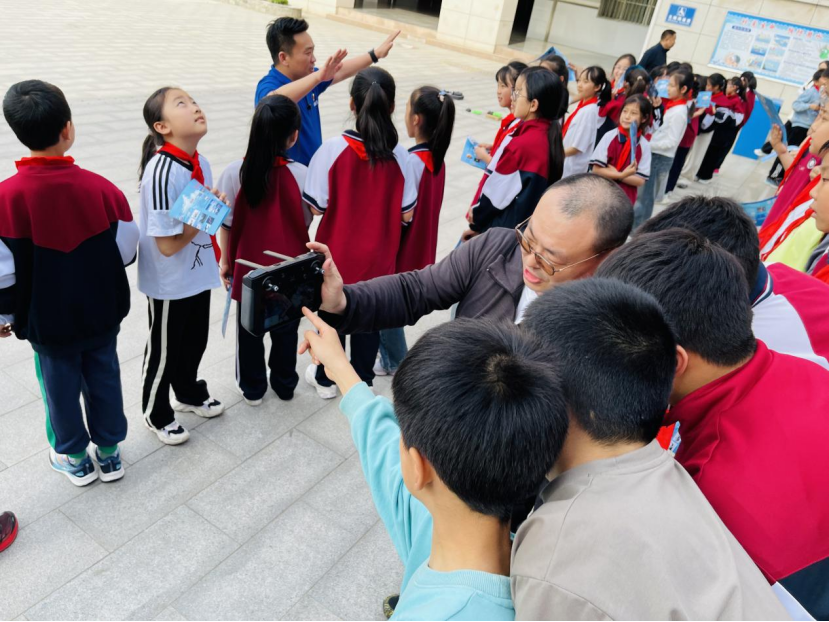 讲座结束后,一场精彩的无人机演示将活动气氛推向了高潮。无人机在空中翱翔,引得孩子们阵阵欢呼,他们仰头追逐,眼中满是好奇与憧憬。惠济区实验小学科学教师表示:“这种‘理论+实践’的教学模式,让课本上的知识变得鲜活起来,激发了孩子们对科学的浓厚兴趣。