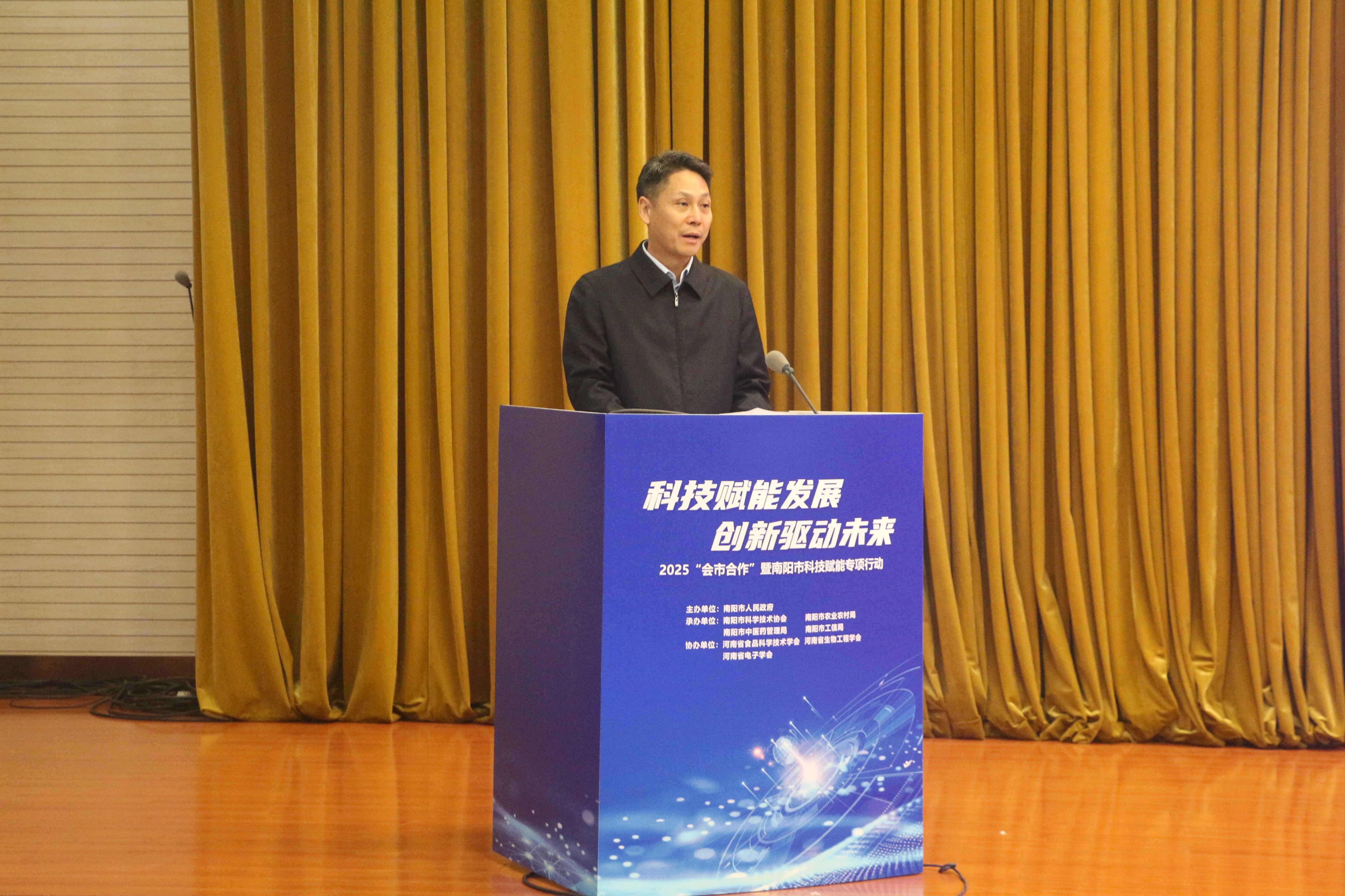 10月28日上午,2025会市合作暨南阳市科技赋能专项行动开幕式在南阳人民会堂举行。中国工程院院士、中国农业大学营养与健康研究院院长、中原食品实验室主任任发政,河南省科协主席刘晓永,陕西科技大学教授、博士生导师莫海珍,河南农业大学教授、全国果蔬功能性食品产业技术创新联盟副理事长李瑜,河南省农业科学院农产品加工研究中心粮食加工研究室主任张康逸,中原食品实验室常务副主任陈历水,中原食品实验室副主任、首席科学家陈树兴等嘉宾出席会议。南阳市人民政府市长路红卫出席并致辞,南阳市委副书记、政法委书记胡军出席并主持,市人大常委会副主任王兵,市政府副市长杨曙光,市政府副市长邓俊峰,市政协副主席华道梅等领导出席会议。部分省级学会专家学者,南阳市直单位和高校主要负责同志,各县(市、区)党委分管负责同志,县直相关单位负责同志,以及全市学会协会、高校教师和企业代表等300余人参与活动。