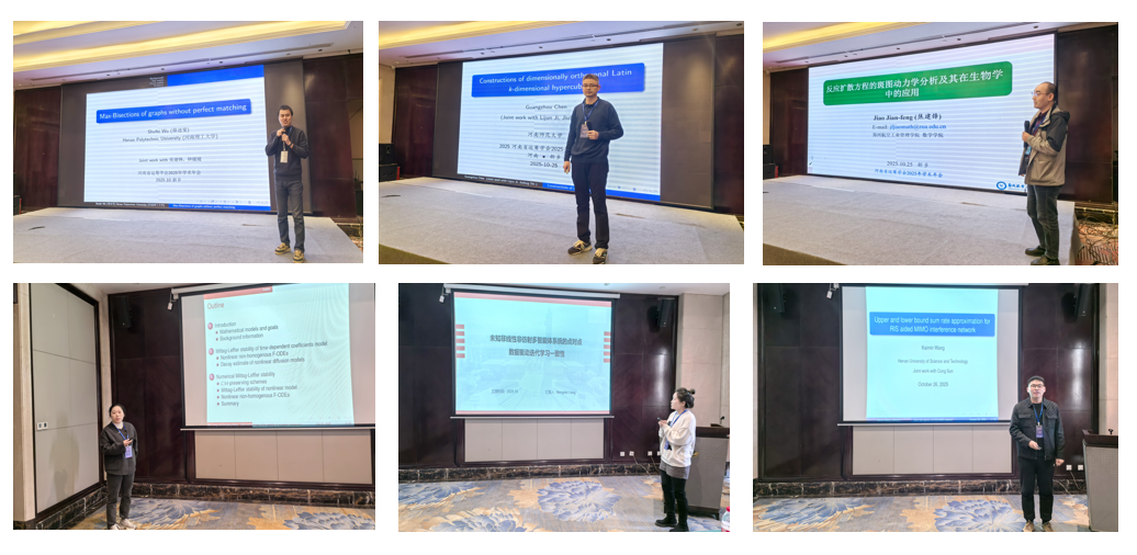 10月24-26日,河南省运筹学会2025年学术年会在新乡市召开。中国运筹学会副理事长、北京大学文再文教授,河南师范大学副校长苗雨教授,河南省运筹学会理事长尚有林教授出席大会并致辞。会议由河南省运筹学会主办,河南师范大学承办,河南省数学会、河南省应用统计学会、河南省应用数学中心协办。