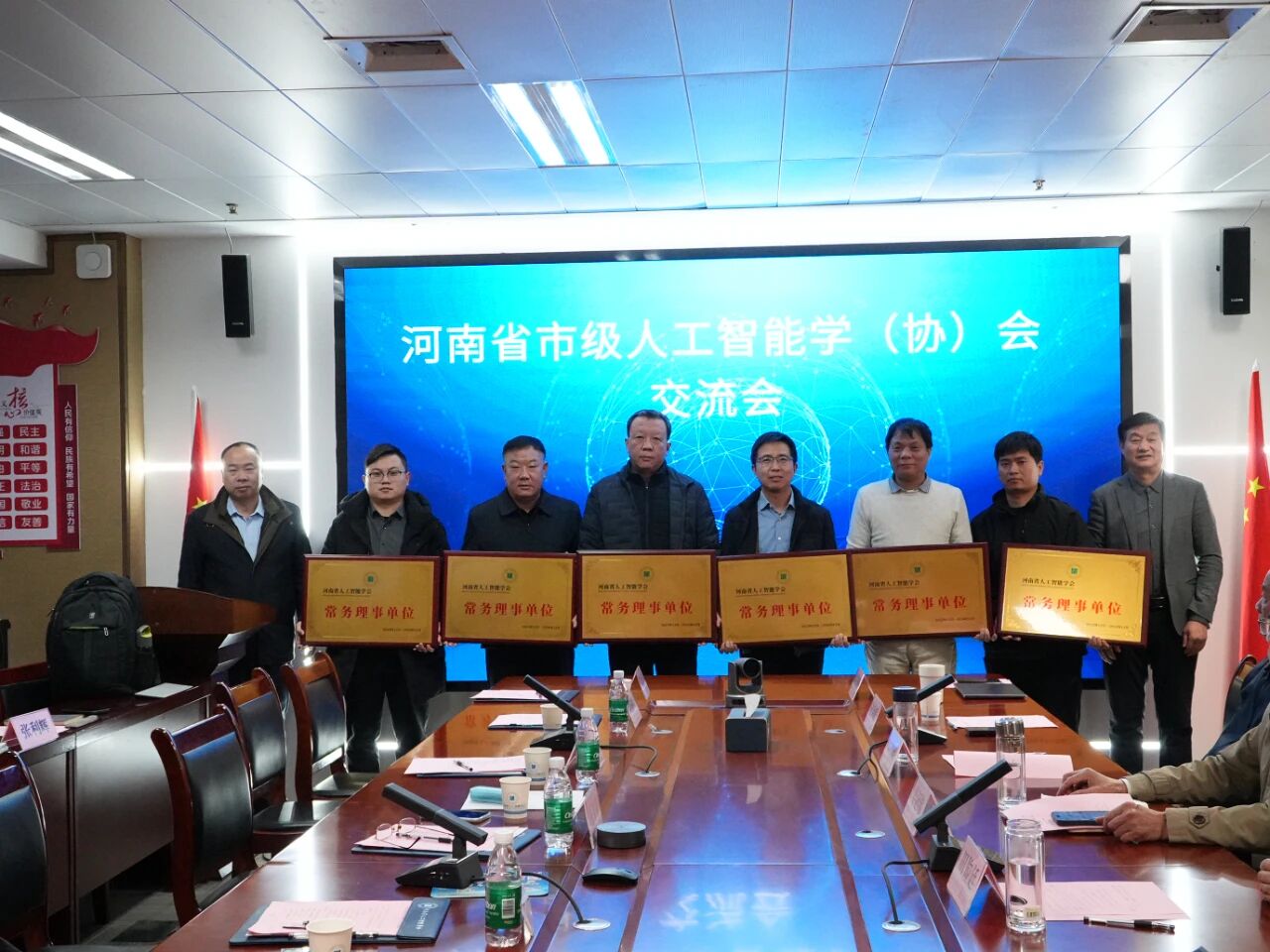 随后马广建、过金超分别为开封市人工智能学会、安阳市人工智能学会、许昌市人工智能学会、商丘市人工智能学会、周口市人工智能学会、驻马店市人工智能协会的代表颁发常务理事单位授牌。
