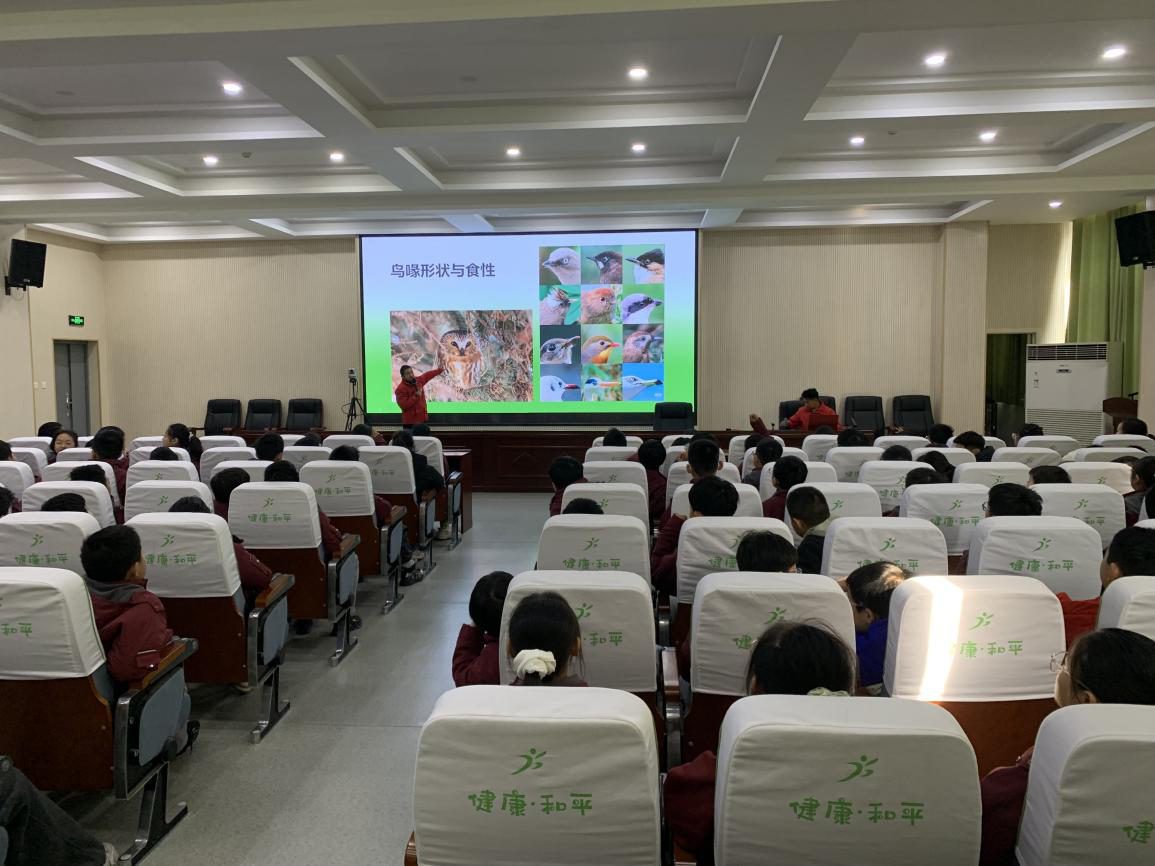 活动最后,学生前往学校报告厅参与主题科普讲座。科普老师围绕鸟类身体形态、羽毛的作用与色彩图案、鸟喙的形状与用途,以及不同鸟类的生态角色差异等核心内容,结合通俗易懂的讲解语言,带领大家探寻鸟类形态奥秘。讲座尾声,全体同学共同重温“守护迁徙精灵 聆听自然之语”的生态保护倡议,将生态保护理念深植心中。