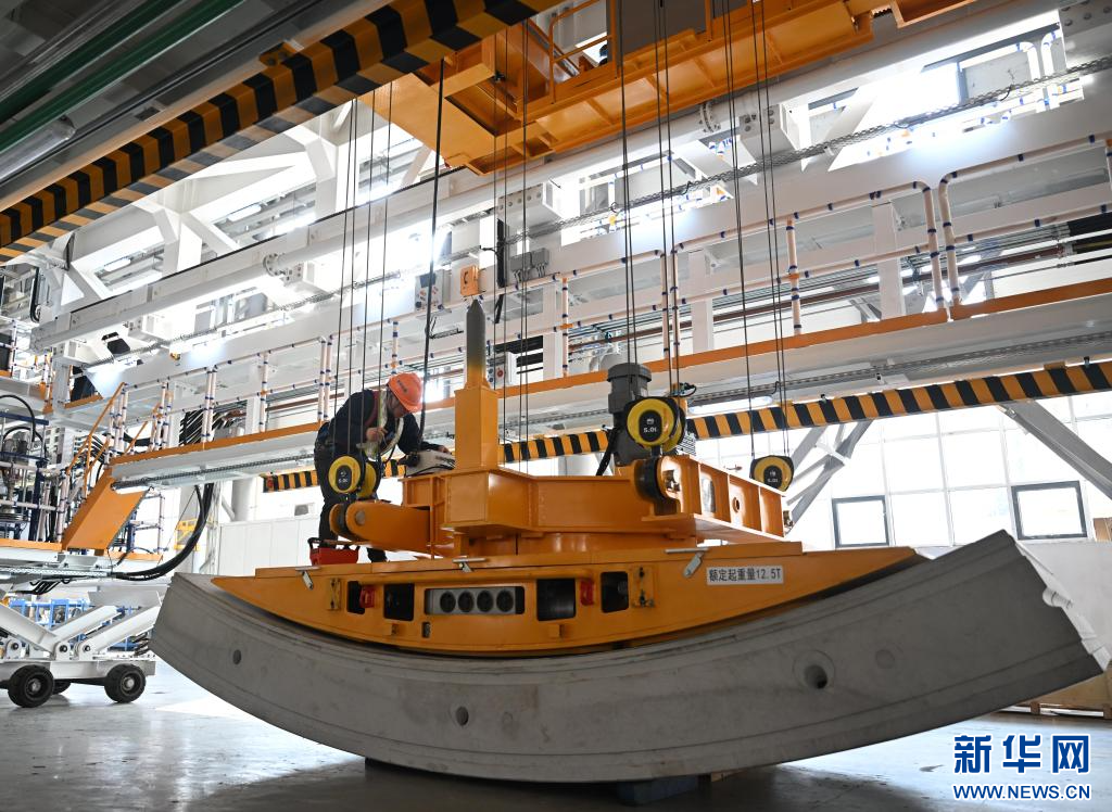 11月3日,工人在位于河南郑州的中铁装备集团车间进行盾构机管片吊机负载调试。