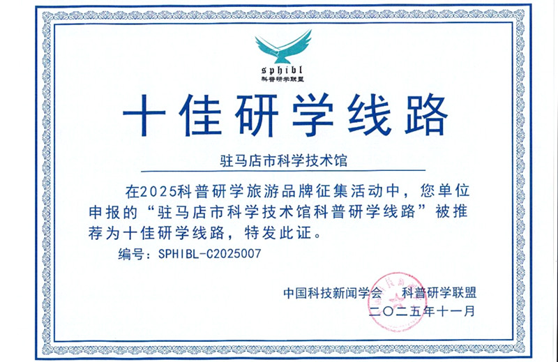 11月15日,在第七届中国科普研学旅游大会上,驻马店市科技馆申报的科普研学线路脱颖而出,荣获“十佳研学线路”称号。这一国家级荣誉,不仅是对驻马店市科技馆在科普研学领域工作的充分肯定,也为持续推进科学教育实践注了新的信心与动力。