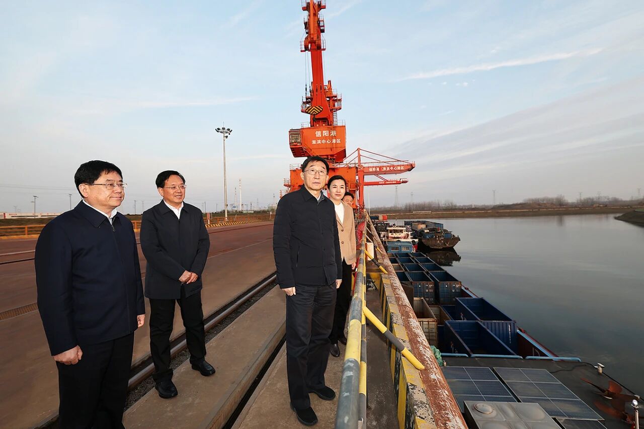 淮滨中心港是我省最大的综合性单体港口,正加快从装卸港向物流港、贸易港提质扩容。刘宁察看港口、码头,询问淮河内河航运、港航项目建设和造船产业发展情况,强调要加强航道规划建设,不断提升港口能级,做大做强临港经济,促进造船业强链补链延链,积极融入服务全国统一大市场建设。