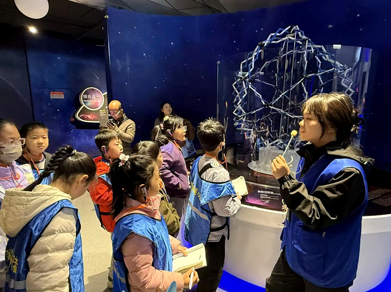 在黑洞展区,提前调试好的模拟引力场装置成为焦点,看到小钢珠被“黑洞”牢牢吸住,小记者们对抽象的天体现象有了直观理解。触摸式地球内核模型、复原的浑仪和简仪等展品前,也都有科技辅导员悉心讲解,揭示古今天文学的智慧。
