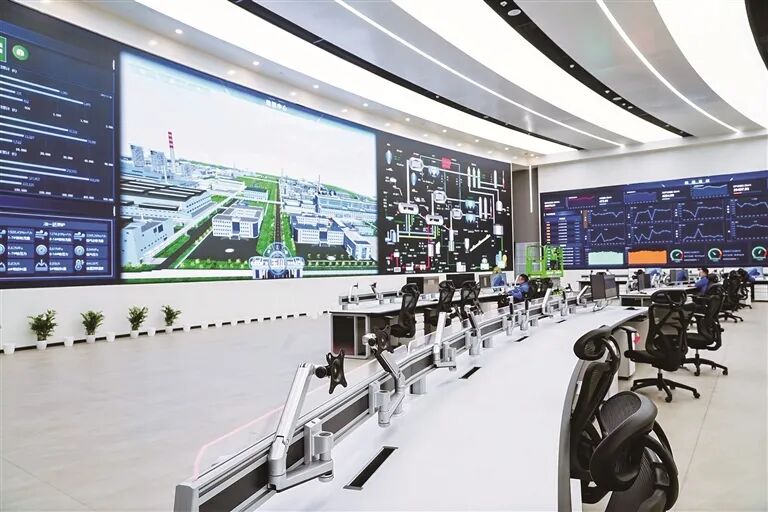 河南豫光金铅集团有限责任公司数智中心,工作人员正在远程监测各生产基地运行数据。