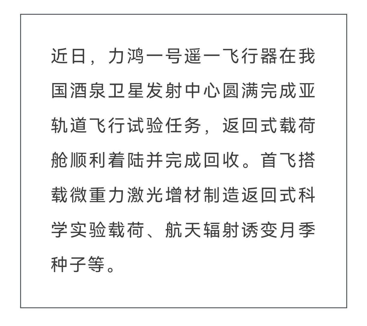 力鸿一号遥一飞行器圆满完成亚轨道飞行试验任务。(图源|中科宇航)