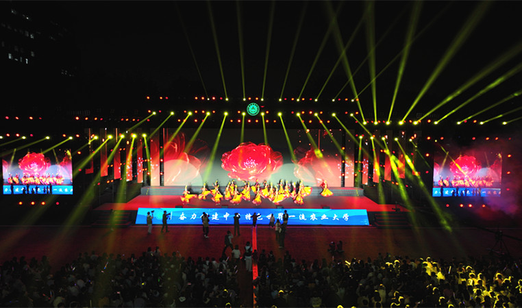 优美动人的民族舞《石榴花开》,象征着农大学子在农大这个大家庭中紧密团结、共同成长;朗诵《聆听花开守望成长》讲述了师生在成长过程中的守望与陪伴;街舞《燃烧》、啦啦操《悦动符号》引爆全场,展现了青春的无限活力;歌曲《追梦赤子心》《Forever Young》《闪耀》等陆续上演,引发全场大合唱,传递出农大学子不畏艰难、勇敢追梦的坚定信念。