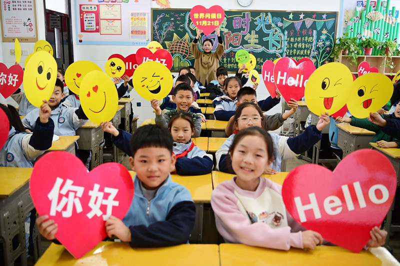 沁阳市中小学校迎接“世界问候日”