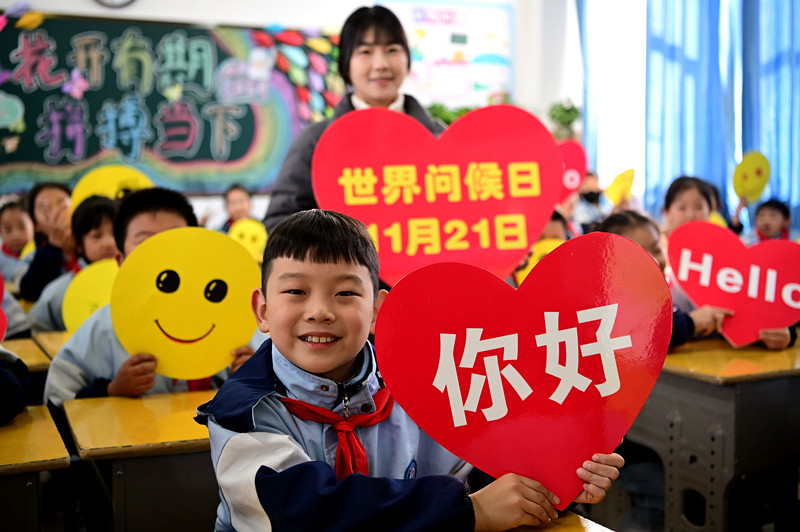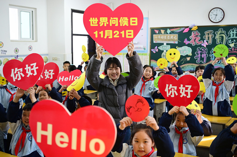 11月21日是世界问候日。“世界问候日”到来之际,沁阳市许多学校幼儿园开展迎接“世界问候日”主题活动,老师带着学生学习文明礼仪,引导学生从小培养文明行为习惯。