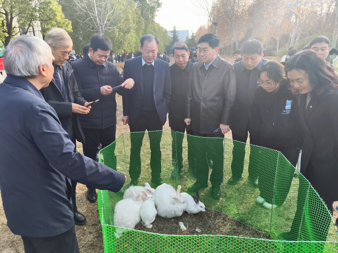 为深化校企合作、产教融合,传承农耕文明,厚植爱农情怀,服务兔产业高质量发展,12月2日下午,河南农业大学在龙子湖校区隆重举办“玉兔呈祥启新程 奋楫笃行向未来”第五届兔主题动物文化节暨河南省兔产业学术研讨会。中国工程院院士、河南农业大学动物科技学院教授康相涛,校党委副书记、工会主席邹松涛,副校长郭战伟、赵鹏,河南省畜牧技术推广总站站长牛岩,中国畜牧业协会兔业分会专家委员会轮值主席、江苏省畜牧总站原站长朱满兴研究员,中国畜牧兽医学会养兔学分会副理事长、中国畜牧业协会兔业分会常务理事兼专家组组长、河北农业大学谷子林教授,河南省畜牧兽医学会兔业分会会长、河南科技大学张自强教授,河南省畜牧兽医学会兔业分会常务副会长、济源阳光兔业段天奎董事长,河南省畜牧兽医学会兔业分会副会长、河南元丰兔业刘振生董事长,及学校相关职能部门负责人、企业嘉宾,动物科技学院和动物医学院师生代表千余人参与活动。本次活动由河南农业大学动物科技学院、动物医学院和河南省畜牧兽医学会兔业分会联合主办。