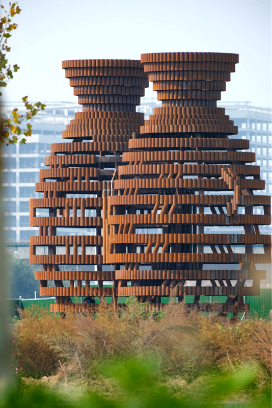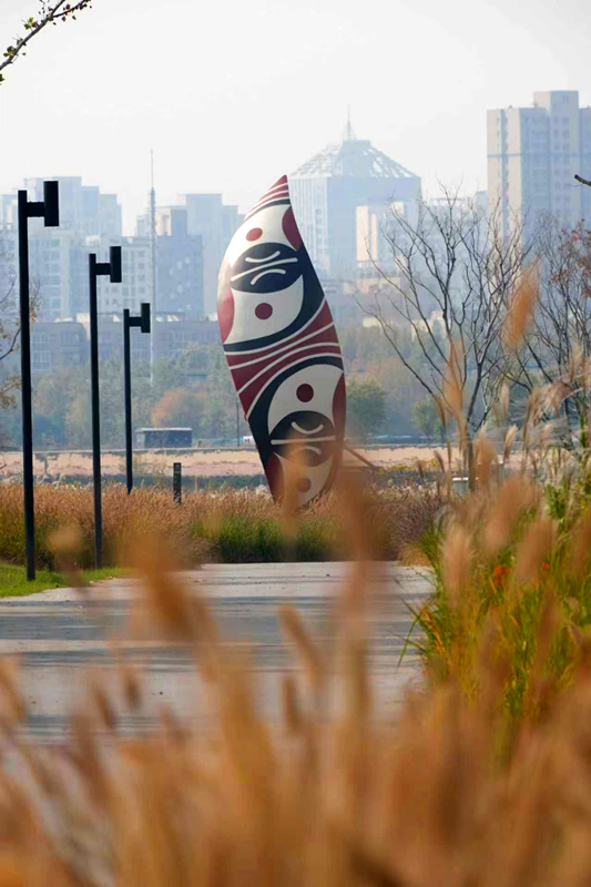 大河村国家考古遗址公园的“大河·彩韵承舟”雕塑 王羿 摄
