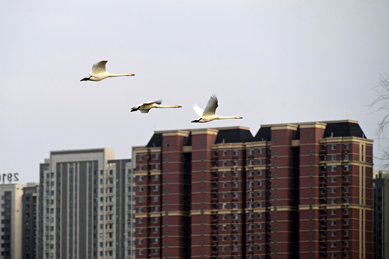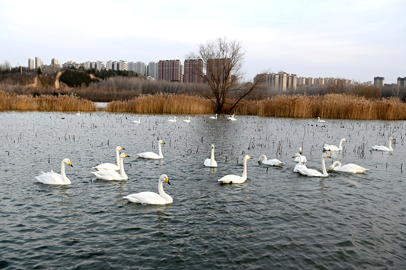 12月20日在三门峡市天鹅湖国家城市湿地公园拍摄的白天鹅。