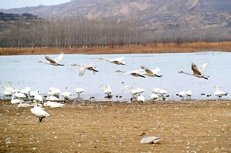 进入冬季,大批白天鹅来到河南省三门峡市黄河湿地栖息越冬。近年来,随着当地对黄河沿岸湿地生态保护工作的不断加强,白天鹅的数量也在逐年增加。目前,三门峡黄河岸边40余万亩浅滩湿地已迎来白天鹅万余只。
