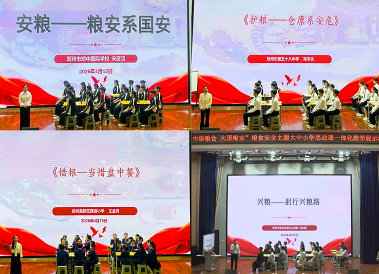 4月15日全民国家安全教育日,“中原粮仓 大国粮安”粮食安全主题大中小学思政课一体化教学展示活动在郑州市第五十八中学顺利举办。