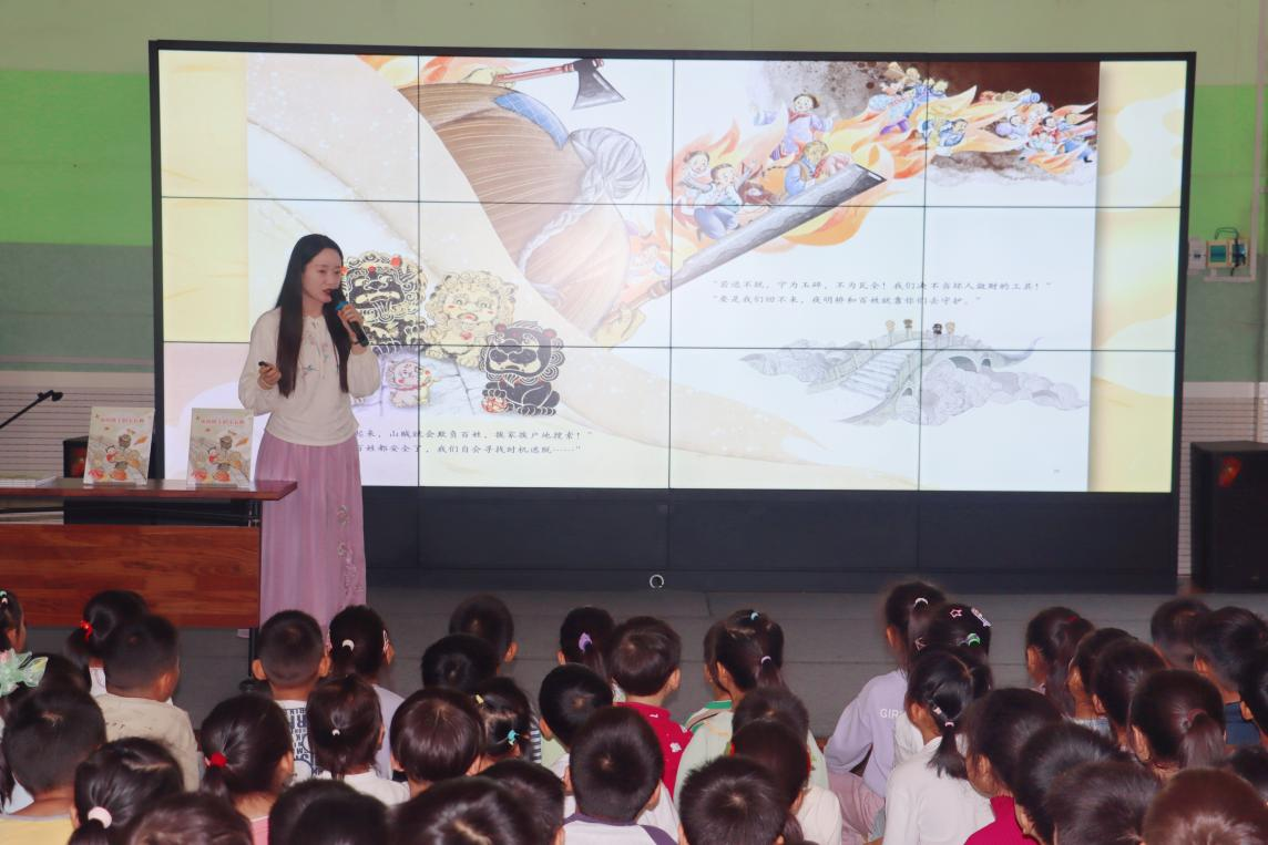 四月春光好,正是读书时。在第31个“世界读书日”和首个“全民阅读活动周”即将到来之际,4月16日下午,《夜明桥上的小石狮》阅读分享会在河南省实验幼儿园万和城校区温馨举行。本次活动以“小石狮带你畅游中国风童话”为主题,特邀儿童文学作家、冰心儿童文学新作奖获得者、长篇童话《夜明桥上的小石狮》绘本文字作者杨紫汐来到孩子们中间,与孩子们共赴一场充满东方韵味与奇思妙想的童话之旅,以生动的阅读实践活动迎接全民阅读盛事,让浓郁书香浸润童心。