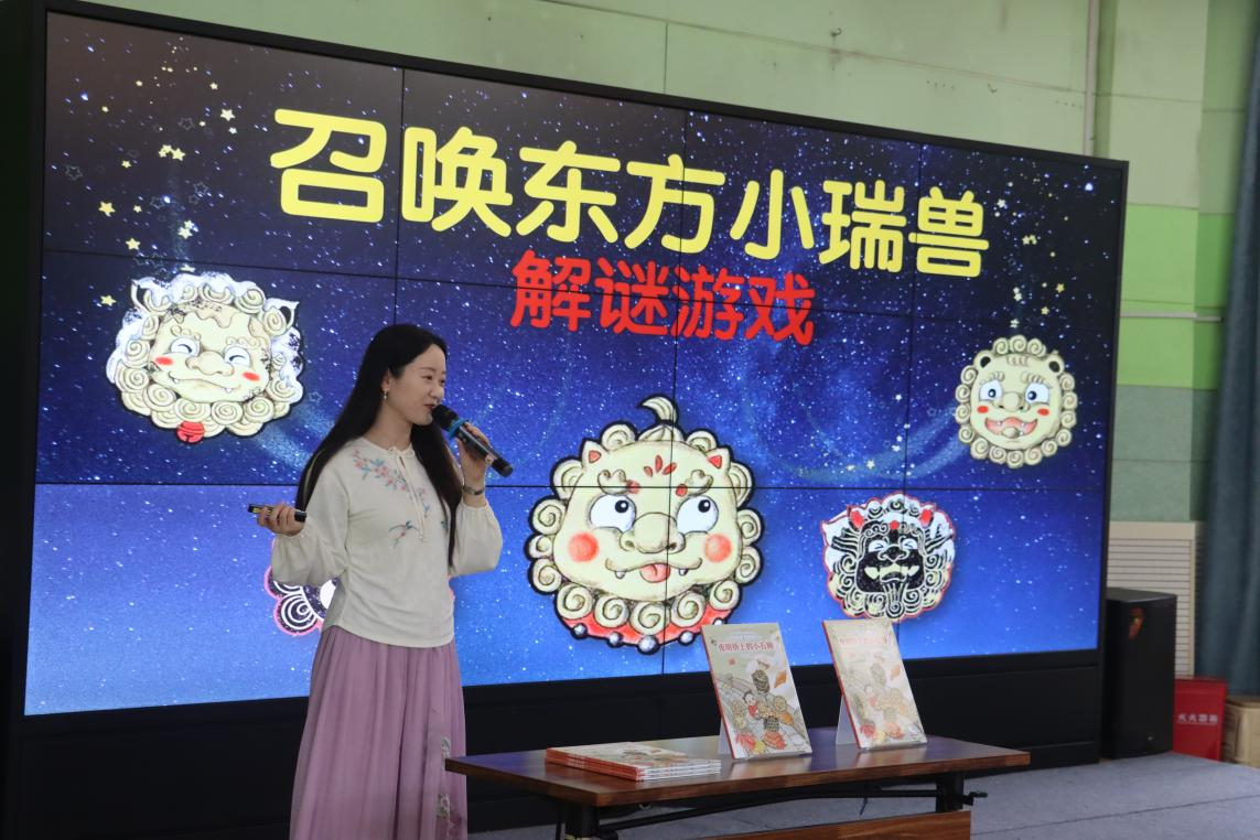 活动高潮当属“召唤东方小瑞兽”解谜游戏。杨老师创设了“小石狮被封印,需要答对所有问题才能召唤出来”的剧情背景,孩子们争先恐后地举手回答:中国哪座桥上的石狮子最多?龙生九子中能避火的是谁?十二生肖如何对应十二地支?如何根据北斗星判断季节?当最后一题被成功破解,全场小朋友在杨老师带领下齐声高喊:“小石狮被大家召唤出来啦!”欢快的背景音乐响起,现场气氛达到顶点。