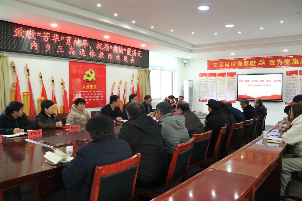 一支粉笔两袖风华,三尺讲台四季耕耘。倾尽丹心育桃李,奉献韶华铸师魂。11月30日上午,内乡县第三高级中学在明德楼第二会议室为三位退休教师举办“致敬芳华育桃李,祝福桑榆霞满天”为主题的内乡三高退休欢送会,受到了与会教师的一致好评。
