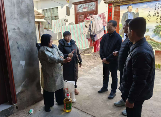 走访慰问送关怀暖人心。在曹楼村广场,李纪峰为48户困难群众发放了面粉、食用油、春联等慰问品,随后走访慰问2户困难家庭,与大家亲切交流,详细询问身体状况、家庭收入、冬季取暖、年货筹备等情况。脱贫户代表表示,省科协驻村工作队入驻以来,为曹楼村整修道路、开展各类志愿帮扶活动,带来了显著的变化;驻村干部经常入户调查,认真倾听群众的生活需求和实际困难,急群众之所急,想群众之所想,申请各类政策和项目,使群众切实感受到了党的关怀。