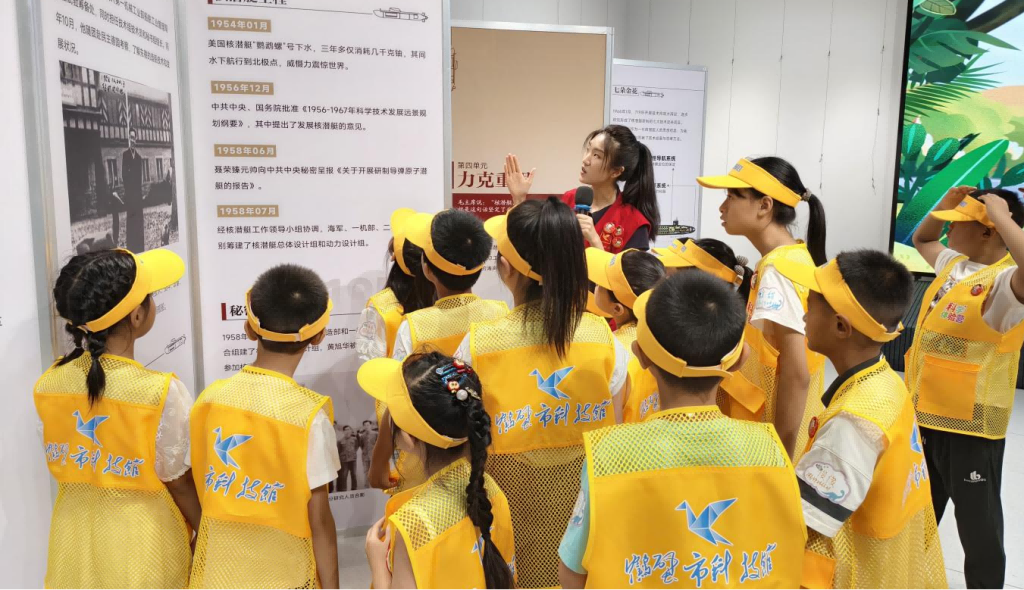 活动现场,孩子们先是通过趣味破冰游戏拉近距离,随后在讲解员带领下,透过一张张珍贵照片、一件件感人事迹,深入了解黄旭华院士隐姓埋名三十载、为国铸剑的感人事迹。“科学家精神”这个抽象的概念,在生动的故事中变得具体可感。
