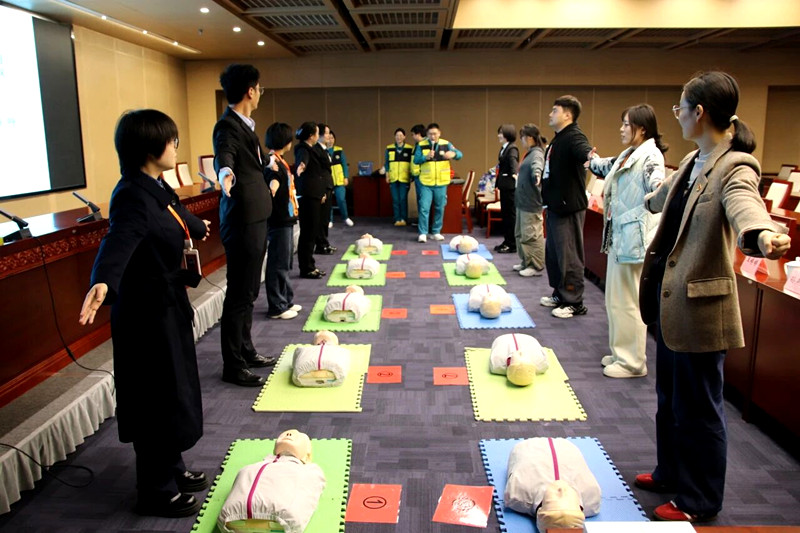 培训课程重点涵盖了心肺复苏(CPR)的全流程操作要点,包括判断意识、呼救求援、胸外按压的位置、深度、频率以及人工呼吸的正确方法。培训老师们利用专业器材,逐步分解动作,确保参训人员理解每一步骤的原理与标准。