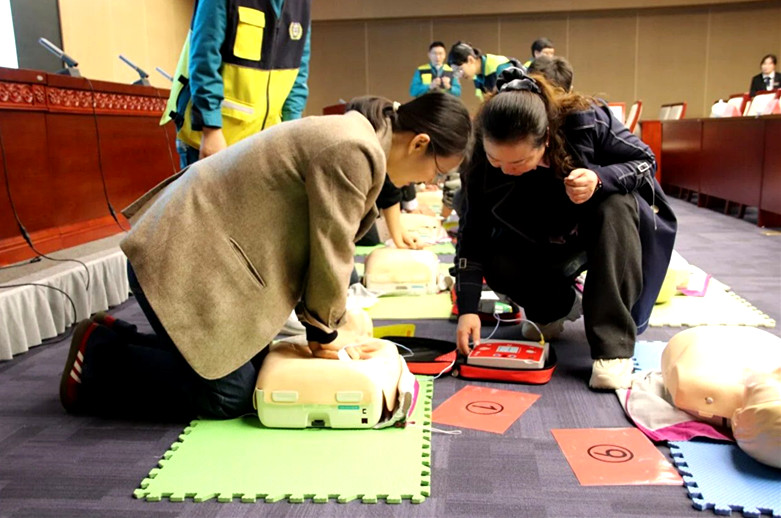 本次培训特邀郑州市紧急医疗救援中心、河南中医药大学第一附属医院急诊科经验丰富的专业急救培训团队莅临授课,副馆长丁文萍主持并参加。