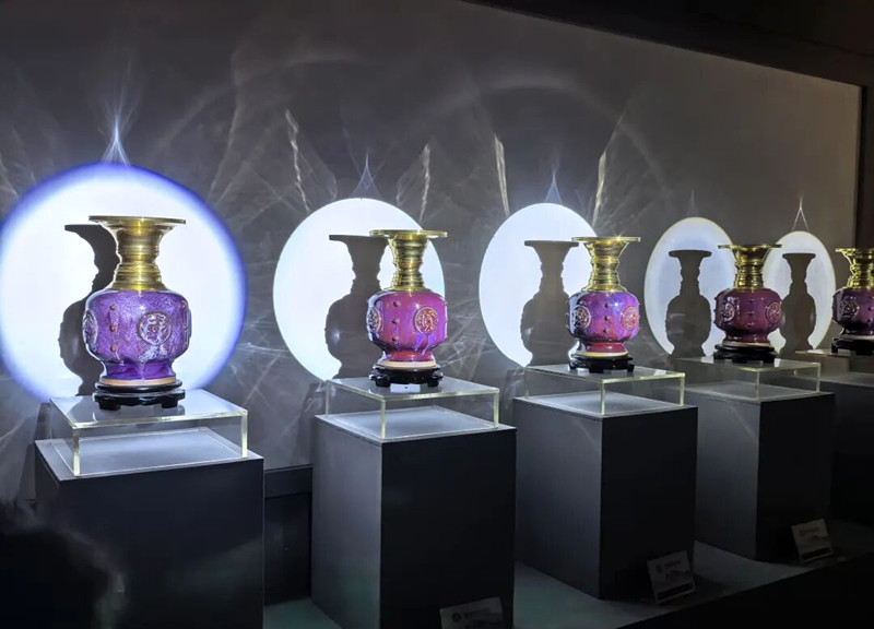 队伍首站抵达中国钧瓷文化园。天成阁典雅古朴,其内陈列的钧瓷作品——伟人尊的庄重、将军瓶的雄浑、五子登科的意趣、小口瓶的秀雅——无不流淌着“入窑一色、出窑万彩”的窑变神奇。聆听讲解,同学们对孔相卿大师等一代代匠人推动钧瓷技艺传承创新的贡献有了清晰认知。