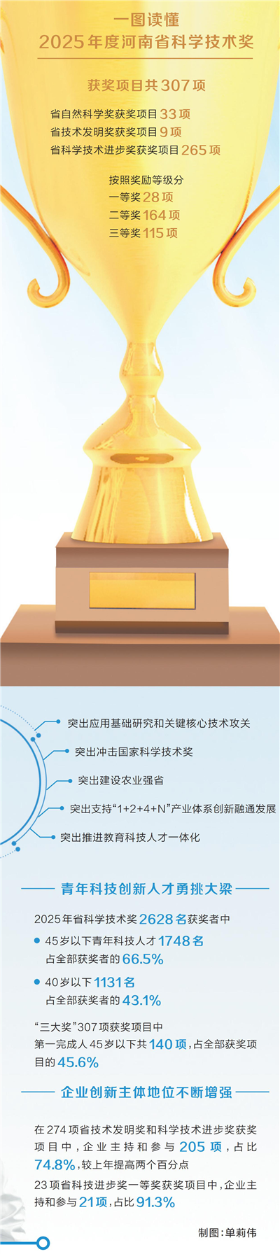 从科研团队破解应用基础研究领域难题,到关键核心技术攻关打破国外垄断;从青年科研人员挑大梁的创新格局,到企业主导的产学研深度融合……透视2025年度科学技术奖获奖项目,可以看出,河南科技创新紧紧围绕服务国家重大需求与全省经济社会发展大局,正以多点突破、全面开花的趋势,为现代化河南建设注入强劲动能。