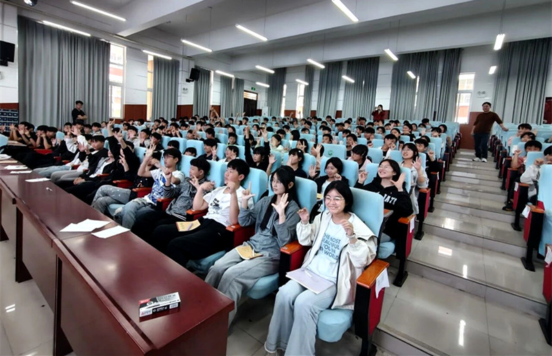 讲座现场气氛高涨、掌声雷动。朱老师通过趣味游戏、互动问答、绘画分析等沉浸式环节,充分调动学生们的参与热情。同学们全程专注投入,积极举手、踊跃发言,跟着老师的引导做放松训练、分享心理困惑,在轻松愉悦的氛围中释放学习压力,沉浸式感受心理调适的魅力。从专注聆听的认真模样,到互动环节的热烈响应,再到课后主动请教的高涨热情,整场讲座洋溢着青春活力与温暖向上的力量。