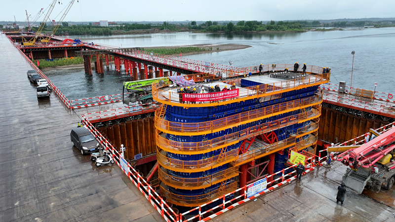 4月21日,由河南城际铁路公司投资建设、中国铁路设计集团有限公司总承包管理、中铁大桥局承建的焦平铁路洛阳黄河公铁大桥主桥首个水中墩顺利浇筑完工。这标志着大桥建设正式从水下基础施工阶段全面转入上部结构施工阶段,为后续钢梁架设提前1个月开辟关键窗口期。