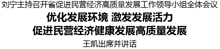 王凯指出,要加大对小微企业和个体工商户的服务支持力度,完善各项制度措施,支持创业创新,优化发展环境,激发经营主体活力。要高质量推进“个转企”“小升规”,健全优质企业梯度培育体系,强化财税、金融政策支持,推动经营主体量质齐升,增强对全省经济的支撑能力。要着力推进龙头企业转型升级,引导企业建立完善现代企业制度,促进上市企业依法合规经营,加快高端化智能化绿色化发展步伐。要大力弘扬企业家精神,加快培育一批优秀民营企业家,引领带动全省民营经济整体素质和竞争力提升。要切实推动惠企政策兑现落实,扎实推进“高效办成一件事”,降低企业生产经营成本和制度性交易成本,助力民营经济健康发展、高质量发展。