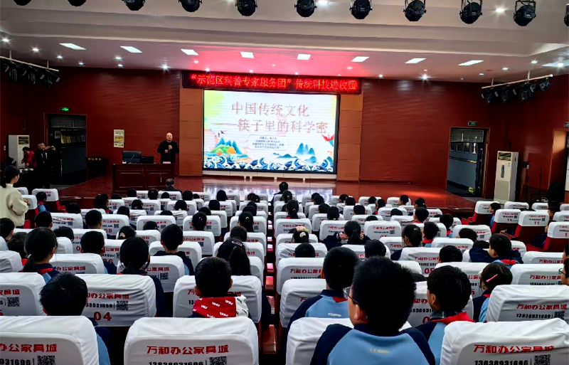 参观结束后,“示范区科普专家服务团”的专家为学生们带来了题为《中国传统文化-筷子里的科学秘密》的专题讲座。专家以生活中常见的筷子为切入点,从力学原理、杠杆应用等角度,生动解读了传统餐具背后蕴含的科学知识,将民俗文化与科普教育巧妙融合。现场互动频繁,学生们积极提问、踊跃发言,在轻松有趣的氛围中拓宽了科学视野,培养了探索精神。