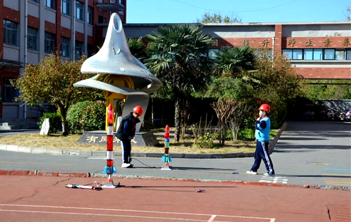 水火箭展区让现场气氛达到高潮。耿庄小学师生带来水火箭展示与发射环节,随着发射指令下达,学生们亲手按下开关,水火箭借助水的压力瞬间腾空而起,在空中划出优美的弧线后缓缓降落,每一次成功发射都引来全场师生的热烈掌声。