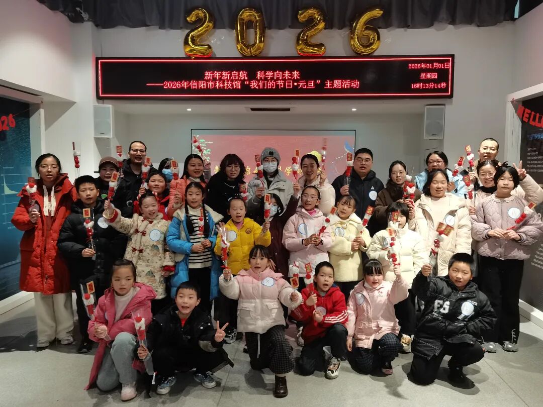 “原来元旦在古代还有元日、元正这么多名字呀!”2026年1月1日,信阳市科技馆内童声阵阵,一场以“新年新启航 科学向未来”为主题的元旦活动热闹开启。20余组亲子家庭走进科技馆,在文化科普、成果回顾与手工互动中,度过了一场兼具知识与趣味的元旦佳节。