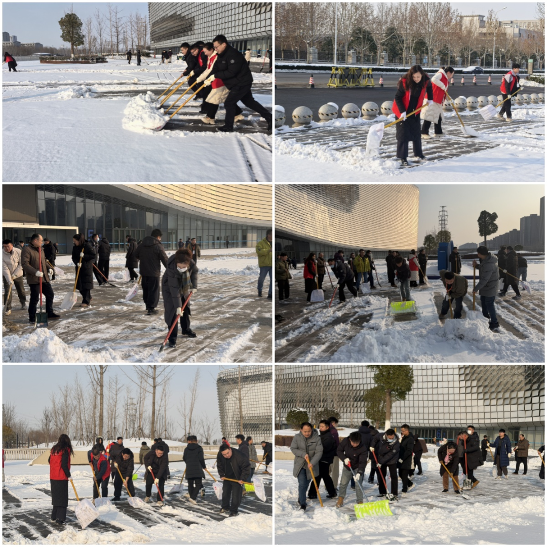 大家以雪为令、分工协作,重点对场馆出入口、主通道等关键区域进行集中清理。尽管天气寒冷,志愿者们仍干劲十足、默契配合,有人负责铲雪,有人专注除冰,还有人清扫路面残余,忙碌的身影在皑皑白雪中构成了一道温暖的风景线。经过两个小时的奋战,成功清除了场馆出入口的冰雪障碍,为公众开辟出安全通畅的“便民路”。