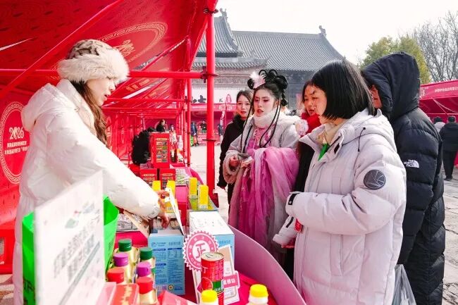 本次活动创新采用“农文旅融合”模式,将产品展销、对接洽谈、直播助农、非遗展示等环节融入文旅体验。活动现场,近百家企业现场集中展示“粤味年礼”“疆香甜礼”“苏心年礼”“京典年礼”“龙江福礼”“豫农优礼”等六省年货精品及河南18个地市(示范区)农特产品,吸引省内外渠道商、采购商与生产商开展高效精准的对接洽谈,多个助农直播间同步开播,形成了线上线下联动促销的强大声势。活动期间,现场开展了木版年画、剪纸、汴绣等非遗制作演示,并推出“郑汴一家亲 年画进万家”等文化惠民活动。