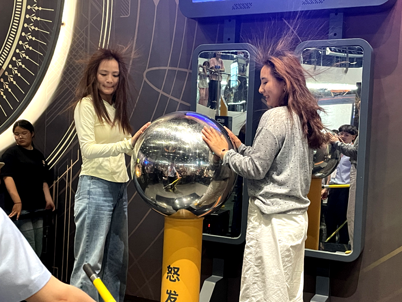 在科技馆的各个展厅,我们设置了不同类型的体验项目,充分满足你强烈的探索欲。系好安全带,亲历“汽车翻转”的惊险瞬间;站在地震平台区感受震感,学习抗震常识;在月球引力区轻盈跳跃,在法拉第笼中伴着音乐了解电流知识,再到“怒发冲冠”装置前让头发因静电高高竖起......每一次体验,都是一场在欢笑中收获知识的科学挑战。