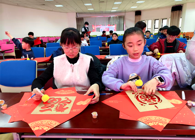 活动还深度融合春节民俗与文化传承。在专业教师的指导下,同学们亲手铺纸、蘸墨、按压,将一个个饱满的“福”字拓印在红纸上,墨香纸韵味间传递出浓浓的新春祝福。这不仅是一次手工体验,更是一场对传统年俗文化的直观感知与传承。