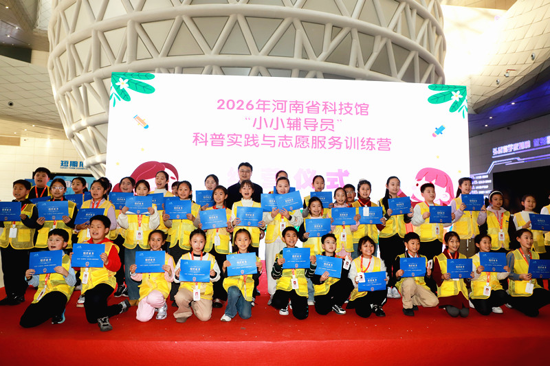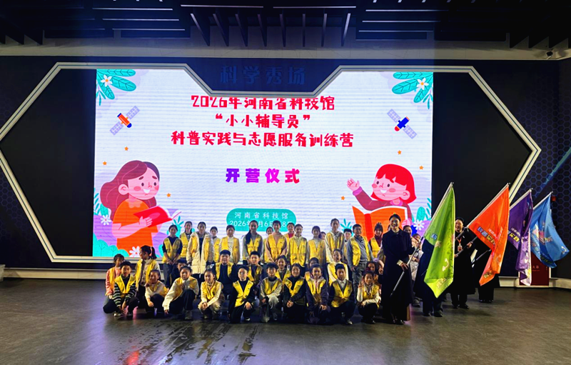 2月8日下午,2026年河南省科技馆“小小辅导员”科普实践与志愿服务训练营结业仪式顺利举行。本次活动旨在激发青少年科学兴趣,丰富假期生活,深化馆校合作育人成效。