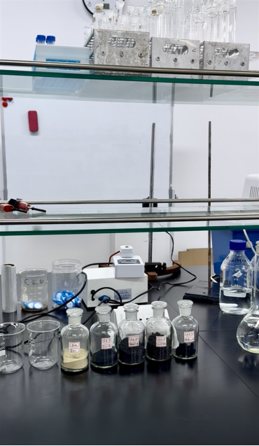 实验室的操作台上,另一项“变废为宝”的成果静静“站立”。数个玻璃瓶,里面装着不同大小的黑色颗粒。“你看,这是我们的新型‘废白土炭’吸附材料。”她解释说,“废白土”产生于食用油精炼过程,随意处置会污染环境,但经过处理就变身为污水处理的好帮手。
