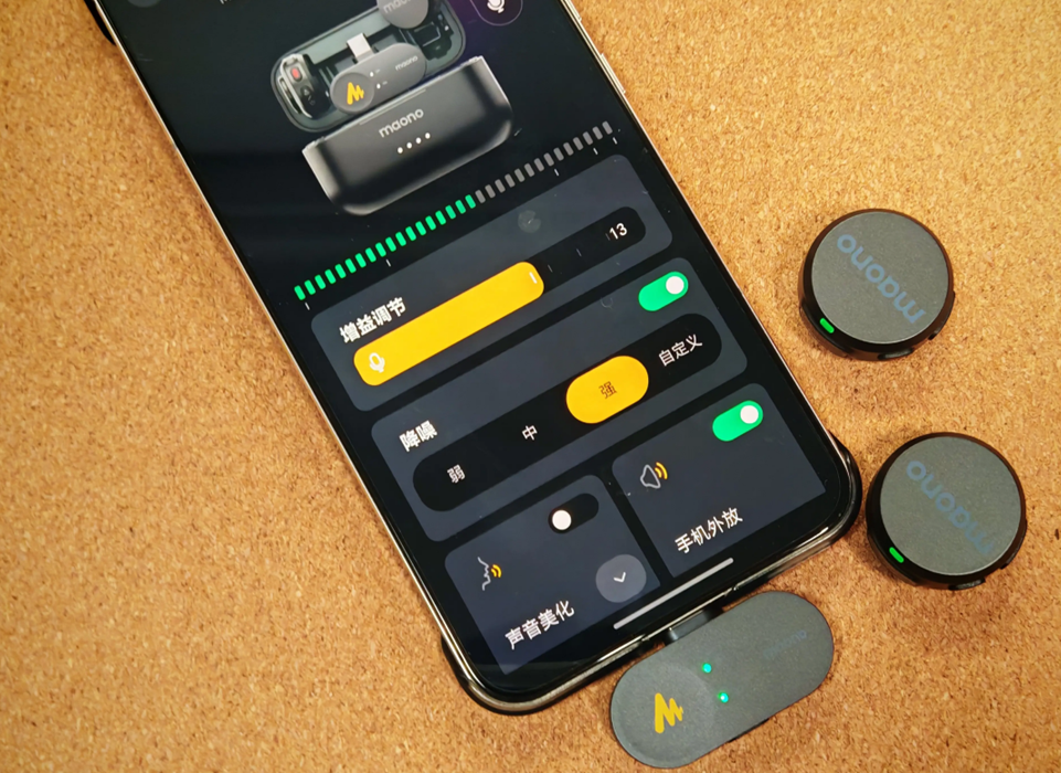 WAVE T5的智能调音功能(采访、演讲、直播、音乐四大预设场景)使其在多种移动创作场景中游刃有余。无论是户外采访,还是室内直播,用户都能通过MaonoLink APP一键优化声音。这一产品逻辑与闪克“软硬结合”的生态理念一脉相承,通过自研的MaonoLink软件,将复杂的DSP功能可视化,用户无需专业知识即可获得专业级音频效果。