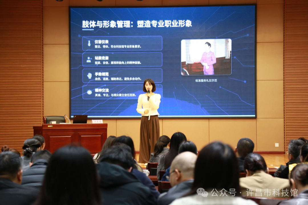 吴晨晨老师聚焦科技辅导员角色认知、科普讲解核心原则,以及语言表达与肢体形象管理两大主题,结合“电磁感应”等展品案例,精心分享三步法讲解策略,帮助辅导员梳理讲解思路、通俗传递展品知识;同时现场示范规范讲解仪态,引导大家实现语言技巧与肢体形象的有机融合。