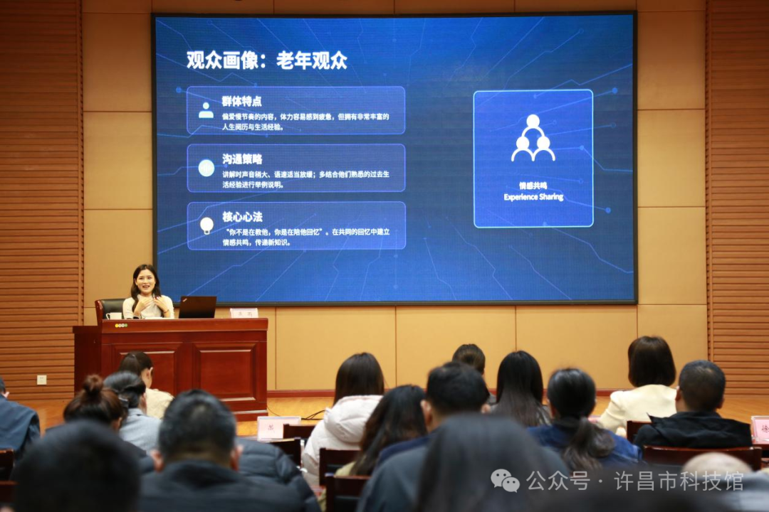 燕雨老师重点讲授展品讲解的核心逻辑与实践经验,针对不同年龄段及群体,系统分享分众化沟通技巧,助力辅导员精准适配讲解方式;同时结合自身科普讲解大赛备赛、实战经历,拆解赛事核心要点,并现场解答参训辅导员在日常讲解、赛事备赛中的疑问,互动氛围浓厚,实现思想碰撞、共同提升。