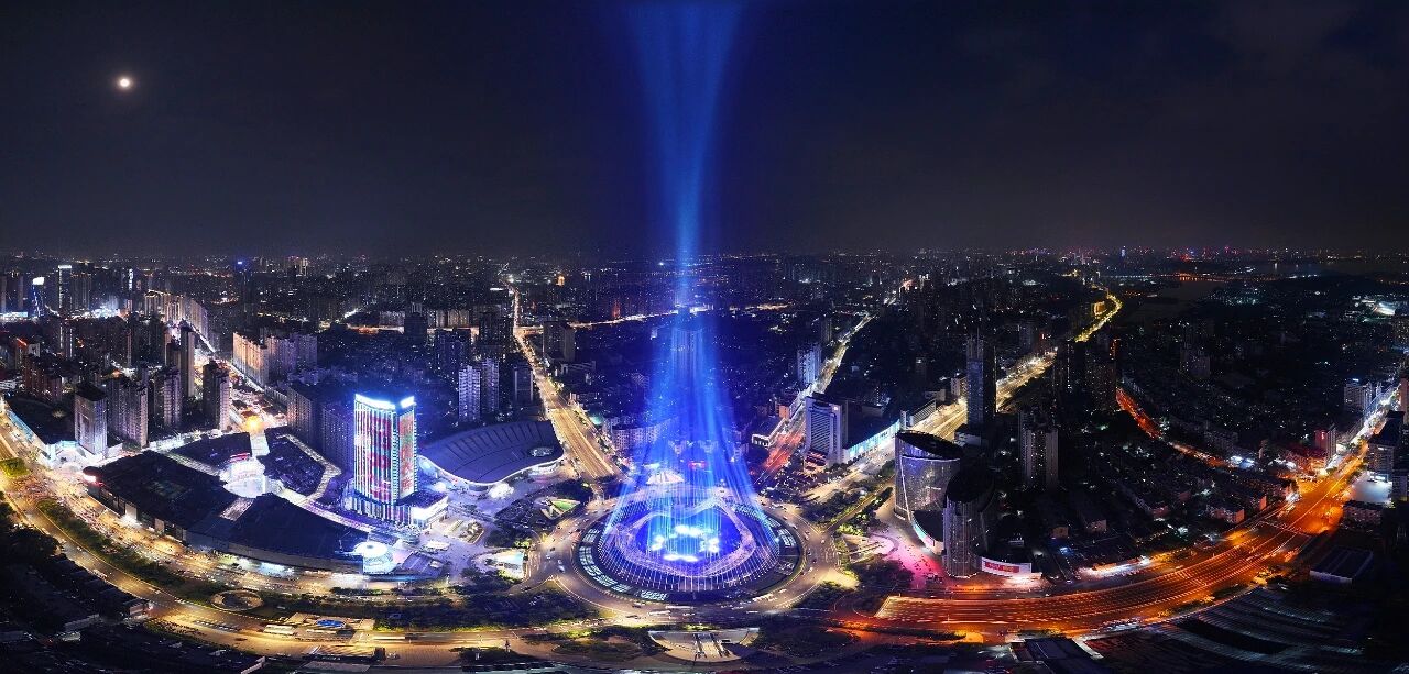 武汉光谷星河广场灯光秀复刻《流浪地球》行星发动机启动特效。