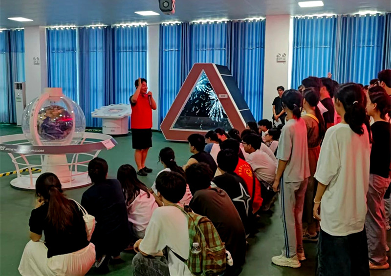 当天下午,返乡大学生带着青春的活力和对科学的热爱,走进科技馆,开启了一场别开生面的“青春邂逅科学  梦想点亮暑假”之旅,为“他们的暑假”增添了一抹亮丽的科技色彩。