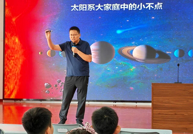 在新华区光明路小学教育集团北校区,中国科学院国家空间科学中心研究员李明涛的《调皮的小行星》讲座,带领小学生进行了一场奇妙的太空漫游。他从恐龙灭绝的猜想引入,生动讲解了小行星的奥秘、小行星撞击地球的潜在威胁及人类如何预警和防御。课堂上,孩子们踊跃分享“对付”小行星的奇思妙想,气氛热烈。