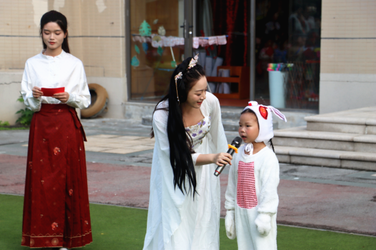 当国庆的欢歌遇上中秋的团圆,传统文化与爱国情怀在此刻完美交融。伴着悠悠古乐,嫦娥仙子与玉兔宝宝翩然而至,为孩子们送上象征团圆的美好祝福,将中秋的浪漫传说生动呈现在孩子们面前。