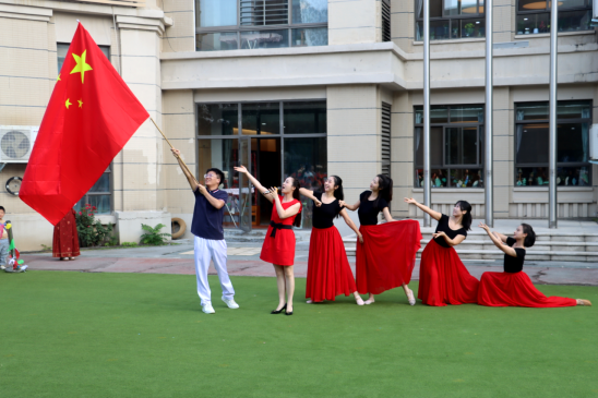 优雅的舞姿,曼妙的歌声,教师们也为祖国母亲送上了祝福---歌伴舞《我和我的祖国》。