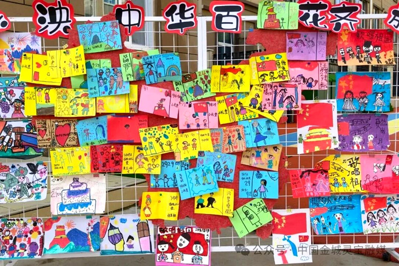 金秋送爽,国旗飞扬,9月30日,灵宝市各学校形式多样迎国庆。校园中,剪纸巧手翻飞,合唱歌声嘹亮,与国旗合影定格灿烂笑容,书法作品笔走龙蛇书写爱国情怀,心愿墙上贴满对祖国的深情告白,孩子们以精彩纷呈的活动表达对祖国的热爱。